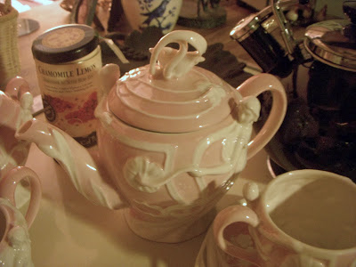 yes it's my tea set :) it's a pale pink & white. My Tawianese friend Yarie gave it to me. I love it!!! I'm more of a coffee girl, but chamomile tea (or any that helps you sleep) i love. I'm not a big fan of the passion fruit teas... Starbucks Chai Tea Latte? LOVE!!! you have the best job for my love of coffee & tea.